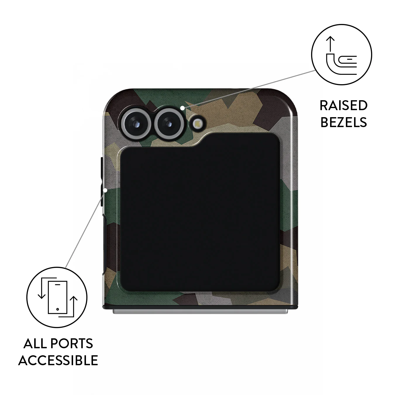Sometimes, all you need is a possibility to blend into nature. With our Tropical Green Camo Samsung Galaxy Z Flip 7 FE phone case, use camouflage as a way to express your curious side or blend in with the surroundings. A stylish accessory can offer heavy-duty protection too!