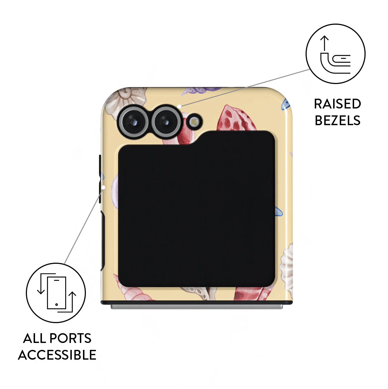 Seashells and starfish, the perfect ocean-inspired charm. This Samsung Galaxy Z Flip 7 FE phone case design is catching eyes and stealing hearts.