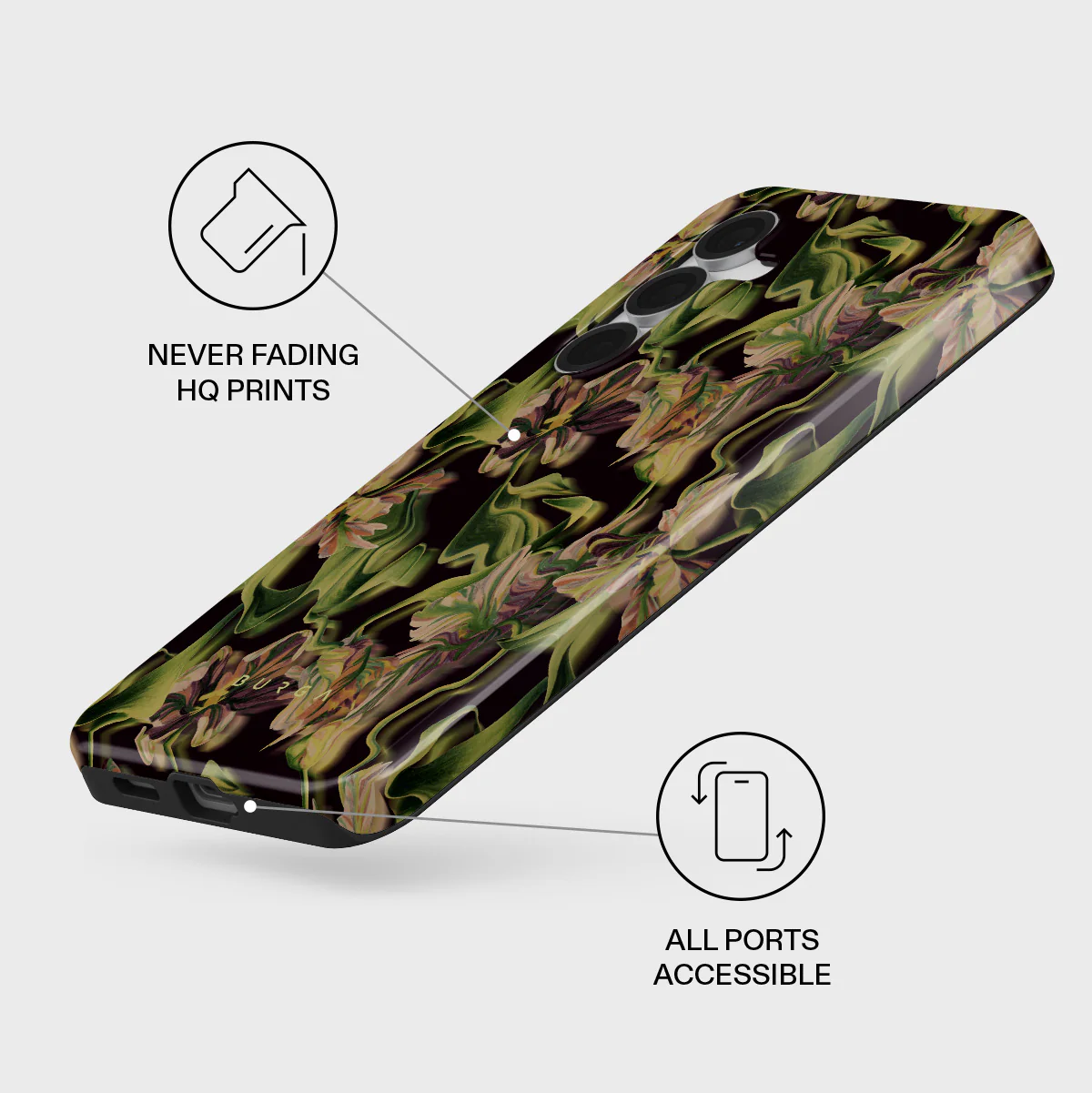 Let's wander into the world of humidity, fog, and deep green color. Our Subtropical Samsung Galaxy S25 FE phone case will add that exotic touch to your life. The flower pattern is as clear as it seems to be melting away. The purple and orange shades in the flowers will add that subtle splash of color to your style without being too provocative.